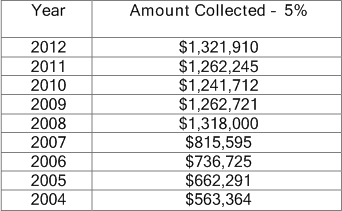 - Bed tax revenue received in 2012 amounted to $1,321,910