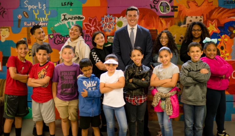 John I. LaMancuso, 2019 UWAYSCC Campaign Chair, with children of the Eastside YMCA, 1 of 26 United Way Community Partners.